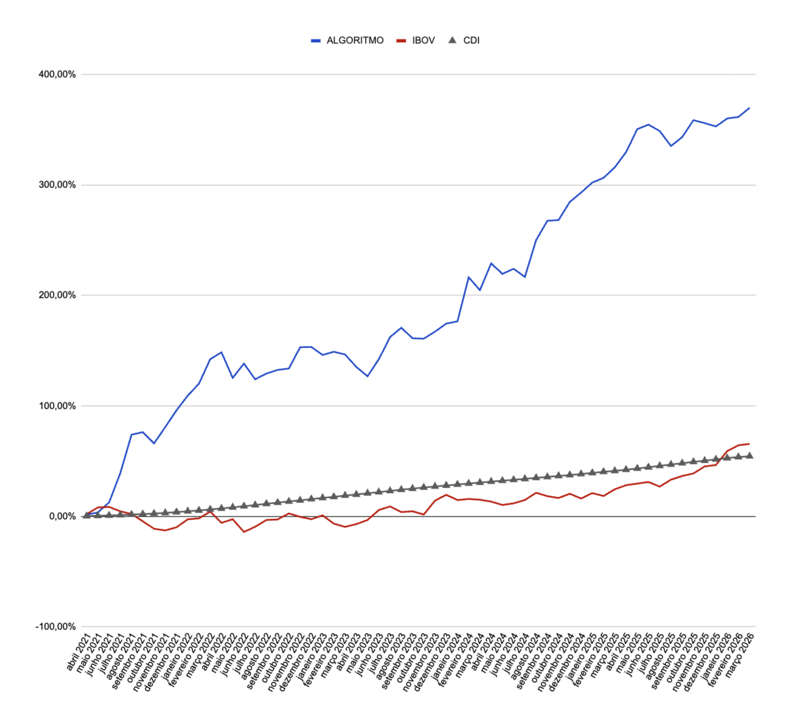 As oportunidades de negociação identificadas pelo algoritmo são de curtíssimo prazo, com horizonte de algumas horas.